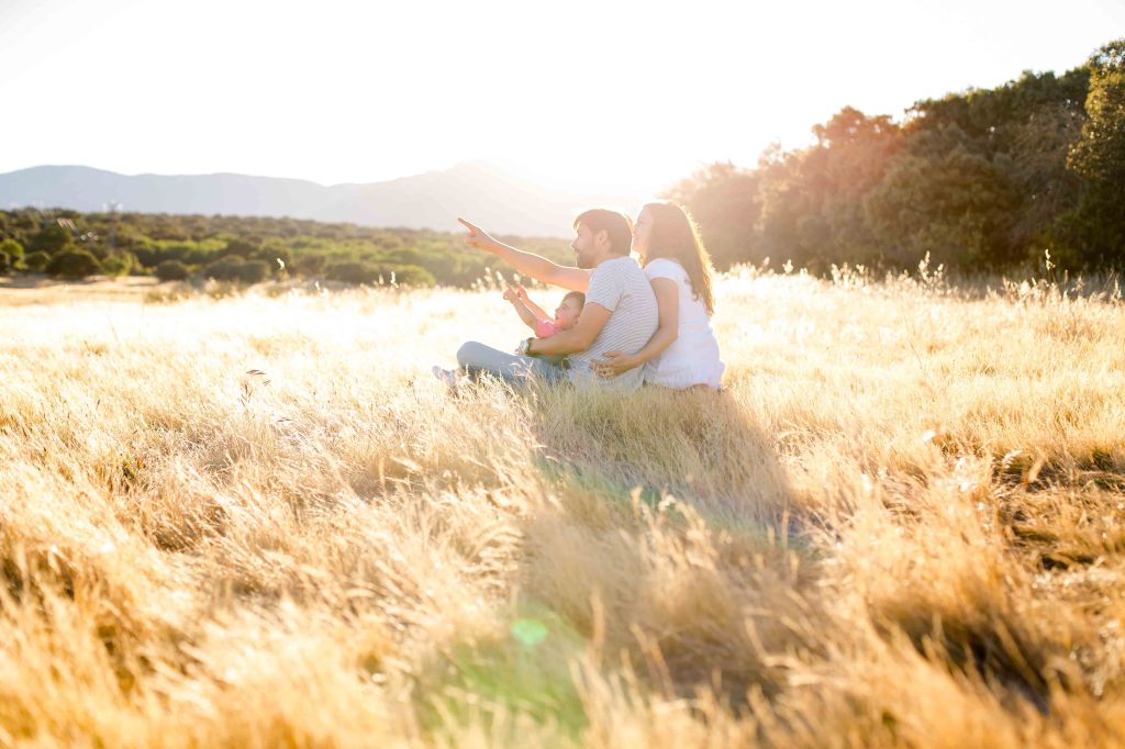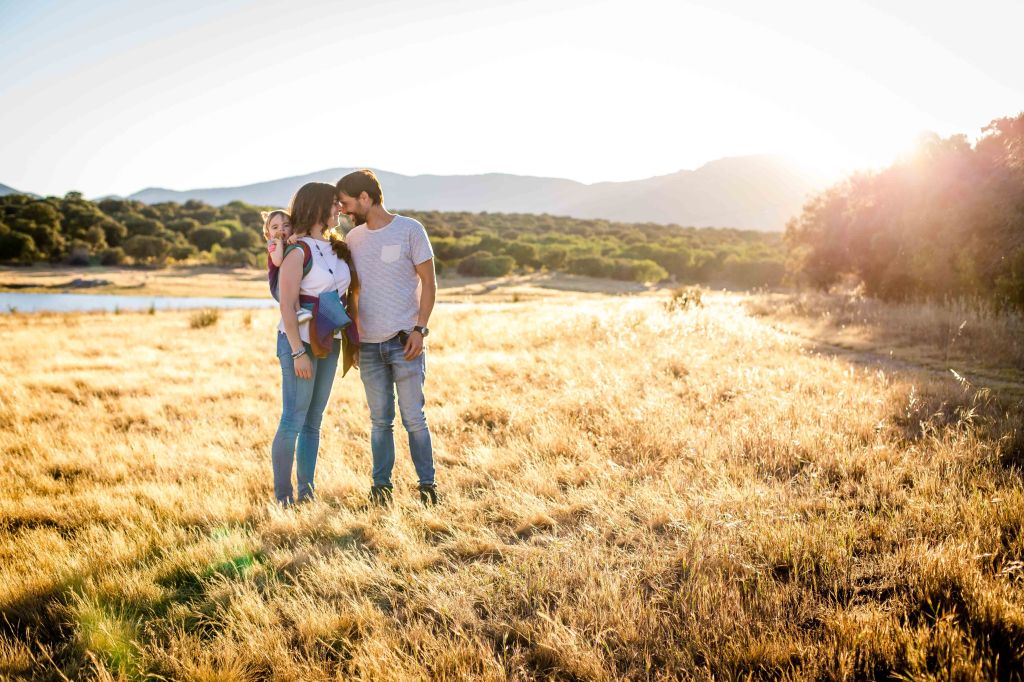 Y esta familia es taaaaan bonita…. que yo voy a dejarme llevar por los colores que me evocan: amarillos, ocres, dorados, brillante sol que se pone a sus espaldas, y el amor que se respira entre ellos y con su bebé.