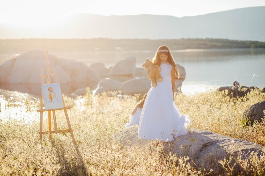 Ella se lo curro un montón, me habló mucho de ellos, de sus aficiones, de lo que les gusta hacer… le dimos vueltas y conseguimos un recuerdo muy especial:  A su hija le encanta pintar, jugar con su hermana, y correr libre por el campo.