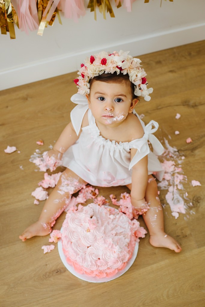 Smashcake o lo que viene siendo aplastar una tarta porque cumples 1 año y… ¿Cuándo vas a tener la oportunidad, si no es de bebé, de sentarte frente a una tarta y destrozarla, comértela con las manos, mancharte, reírte a lo loco y pasártelo genial?